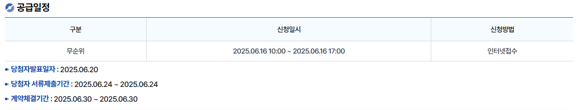 이번 줍줍 청약은 1세대 한정 공급으로 경쟁이 치열할 것으로 예상됩니다. 아래 일정을 꼼꼼히 확인하시고 청약에 참여하시기 바랍니다.
