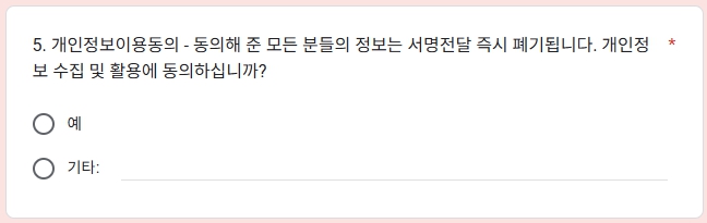 📢 서명에 사용된 개인정보는 제출 즉시 폐기된다고 안내되어 있습니다.