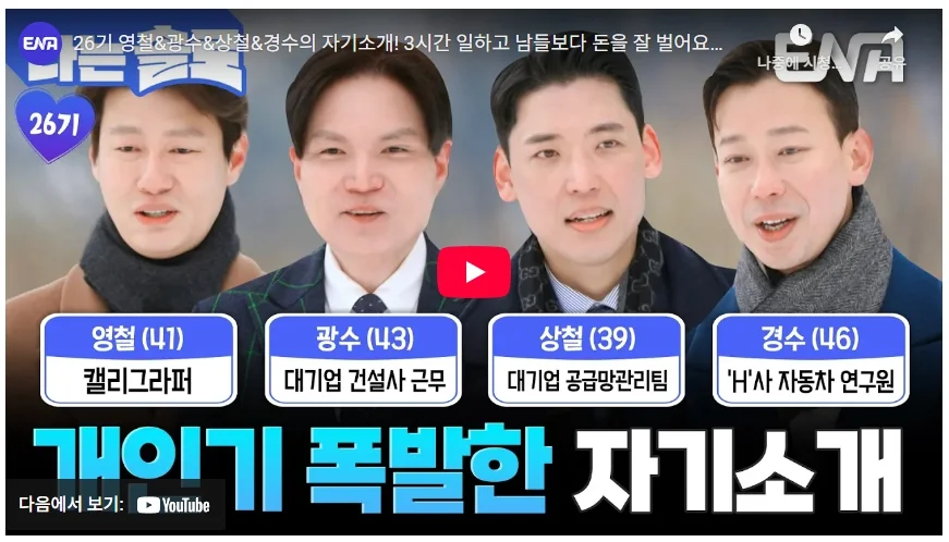 나는 솔로 26기 남자 출연자 – 직업, 나이, 선택 이유