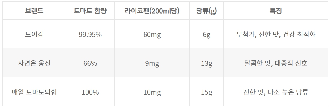 도이캄 토마토주스는 토마토 과즙이 99.95% 이상 함유되어 있고, 설탕, 과당, 향료, 보존료, 유화제 등 인공첨가물이 전혀 들어가지 않은 ‘진짜 착즙 주스’라는 점이 극찬의 이유였습니다.