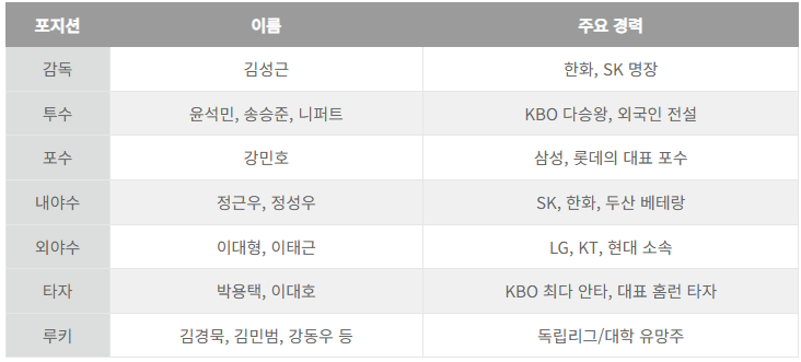 - 경쟁 포지션: 투수, 포수, 3루수, 유격수, 외야수