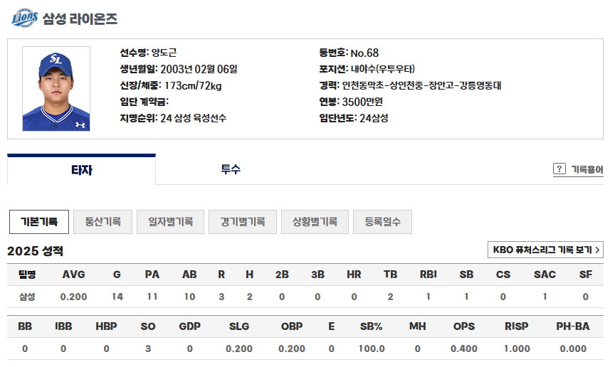 - 입단: 2024년 삼성 라이온즈에 육성선수로 입단 후 정식 선수로 전환