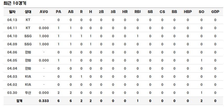 - 2025 시즌: 대주자, 대타, 대수비로 꾸준히 출장하며 팀의 주전 체력 부담을 덜어주는 역할 수행. 최근 경기에서는 끝내기 안타를 기록하며 주목받음