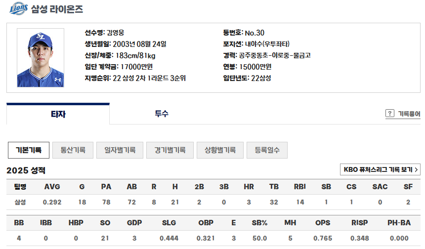- 입단: 2024년 삼성 라이온즈에 육성선수로 입단 후 정식 선수로 전환