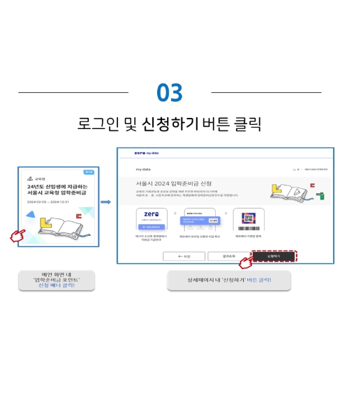 신청은 서울시 입학준비금 신청 사이트에서 온라인으로 진행됩니다.