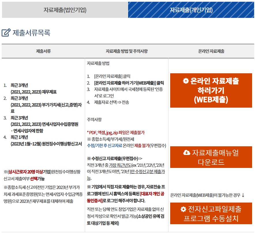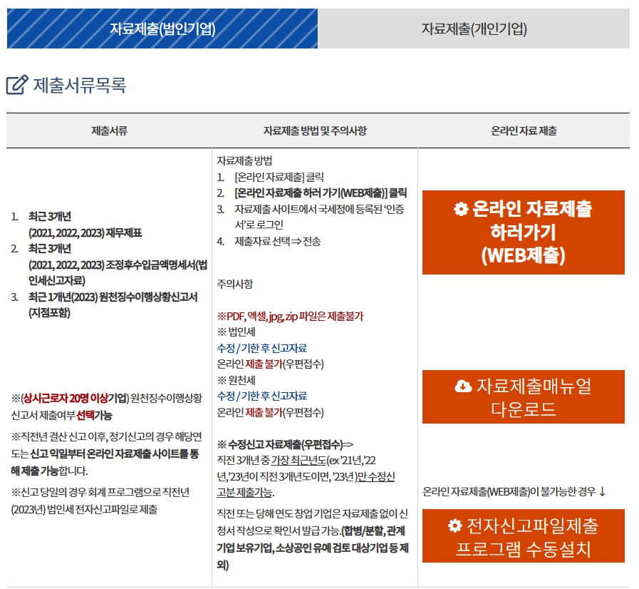 - 직전 사업연도 월별 원천징수이행상황신고서: 상시 근로자 수 확인용.