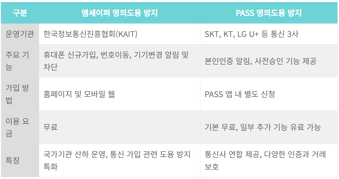 엠세이퍼 명의도용 방지 vs PASS 명의도용방지 서비스 차이