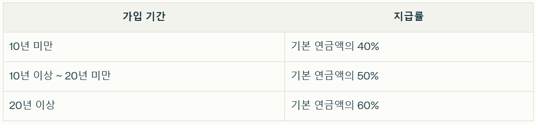 📌사망자가 노령연금을 월 100만 원 받던 경우, 가입 기간이 20년 이상이면 유족은 기본 연금액의 60%인 월 60만 원에 부양가족 연금액이 추가됩니다.