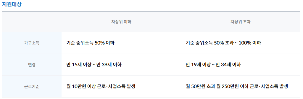 - 가구소득: 중위소득 50% 초과 ~ 100% 이하