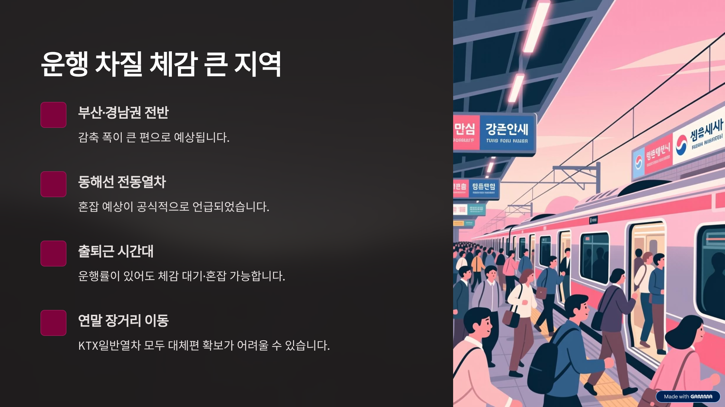 → 운행률이 있어도 체감 대기·혼잡 가능 - 연말 장거리 이동