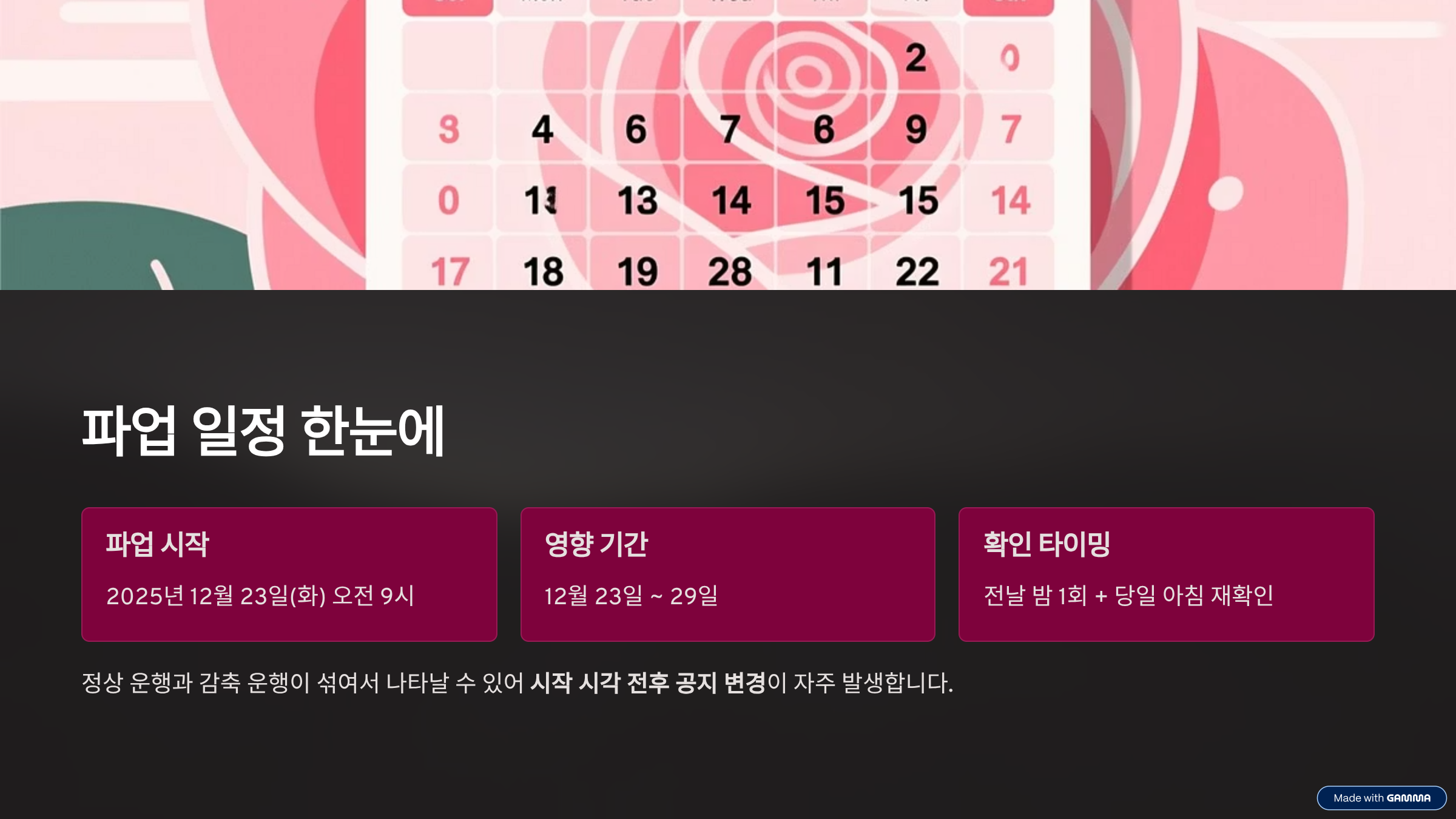 파업 일정은 놓치면 그대로 일정이 꼬이기 쉬운 부분입니다. 특히 시작 시각 전후 공지 변경이 자주 발생합니다.