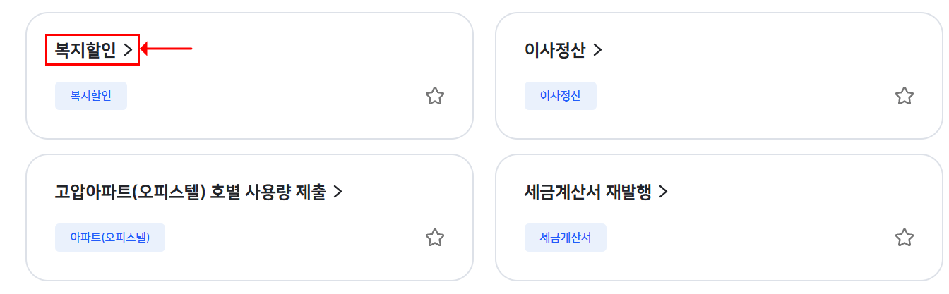 • ‘복지할인 신청’ 메뉴에서 신청서 작성