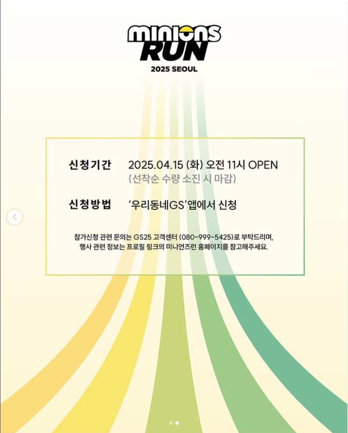 2025 미니언즈 마라톤은 사전 예약제로만 운영되며, 우리동네GS 앱을 통해 단독 접수됩니다.