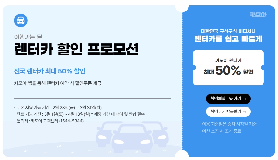 📞 렌터카 할인 문의: 카모아 고객센터 (1544-5344)