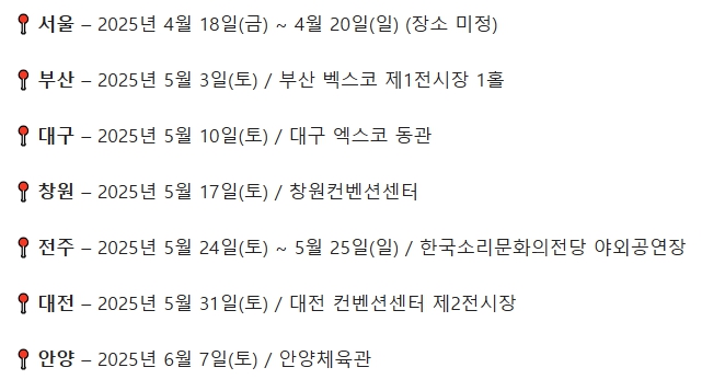 📌서울 공연을 시작으로 전국투어가 펼쳐집니다. 각 공연의 일정과 장소는 아래를 확인하세요.