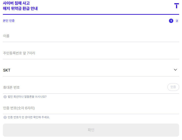 SKT 위약금 조회 과정에서 아래 내용을 주의해주세요.