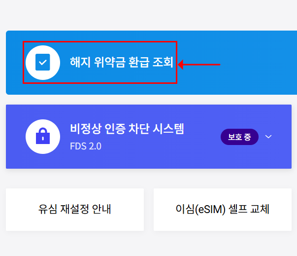 • 메인 메뉴 > ‘해지 위약금 환급 조회’ 메뉴 선택